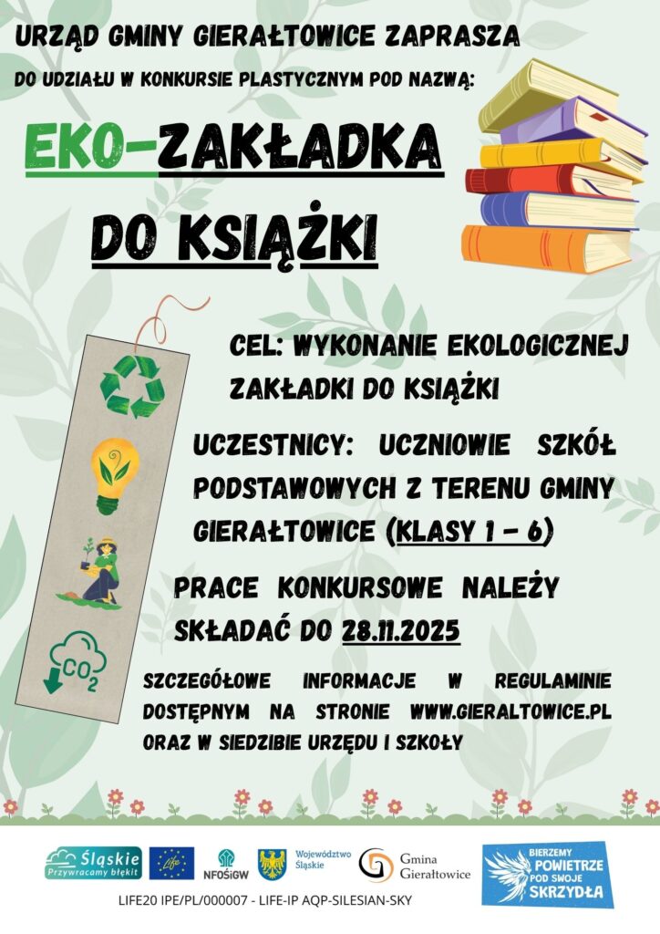 Serdecznie zapraszamy do wzięcia udziału w konkursie na ekologiczną zakładkę do ksiazki.