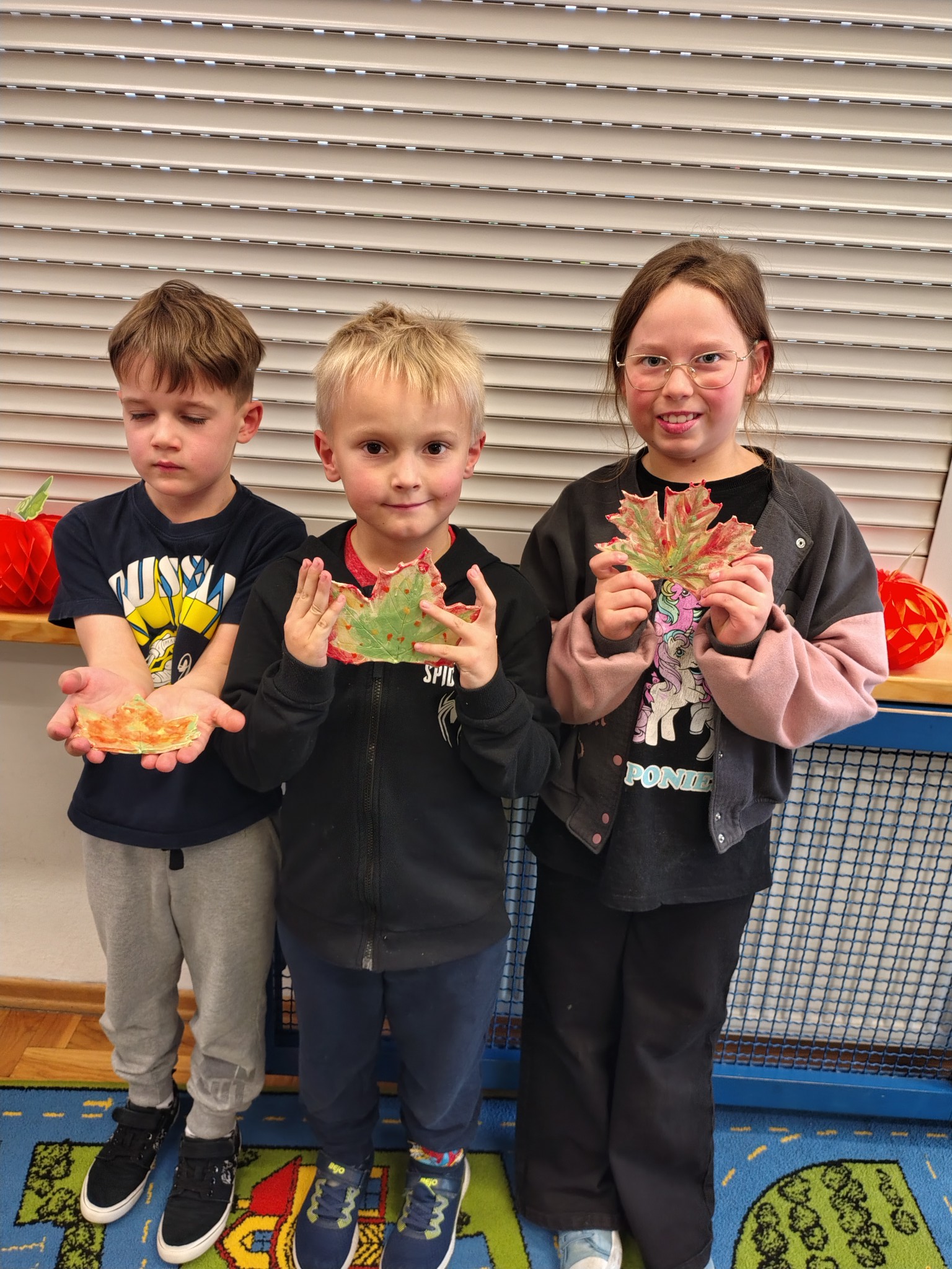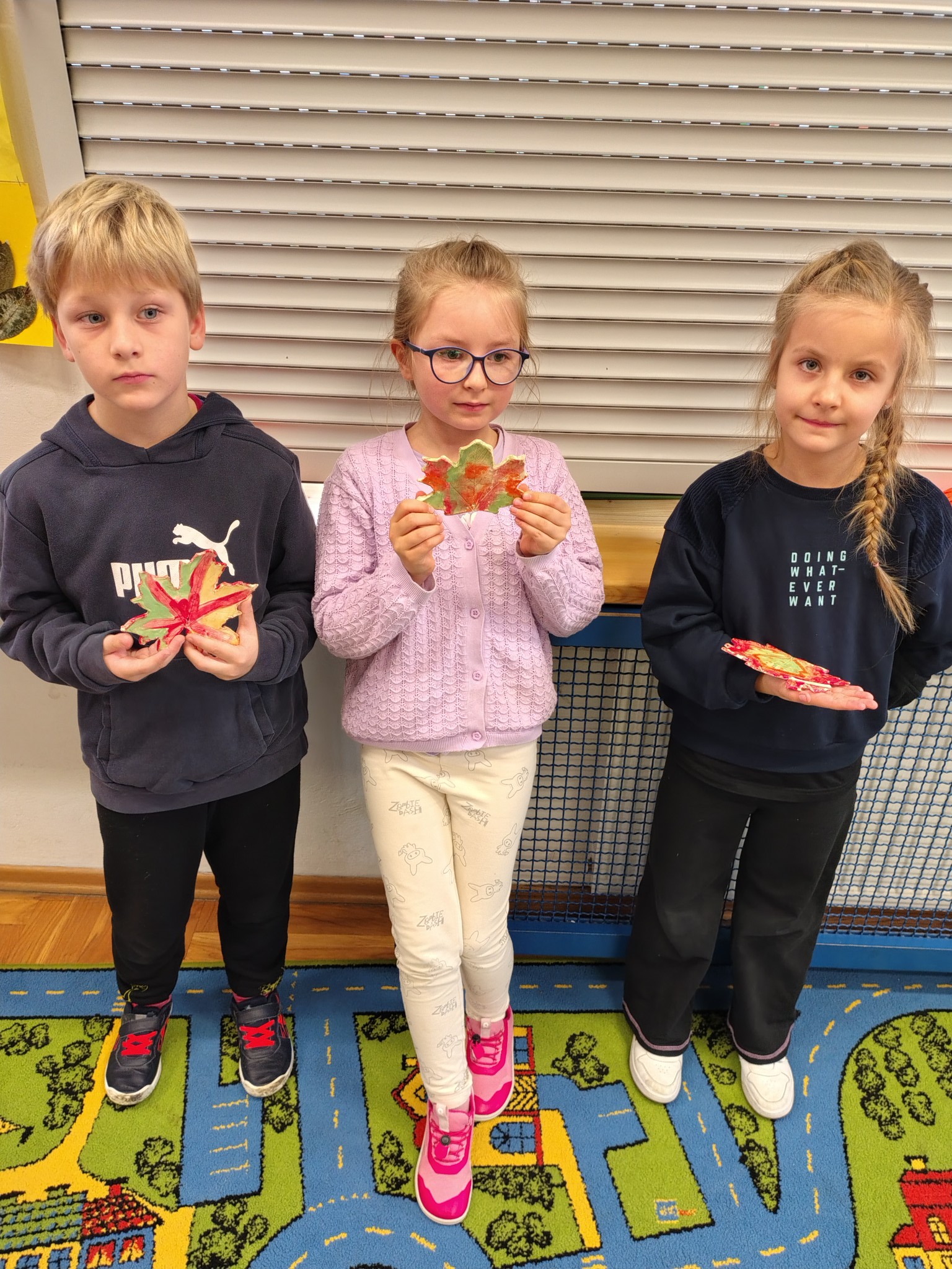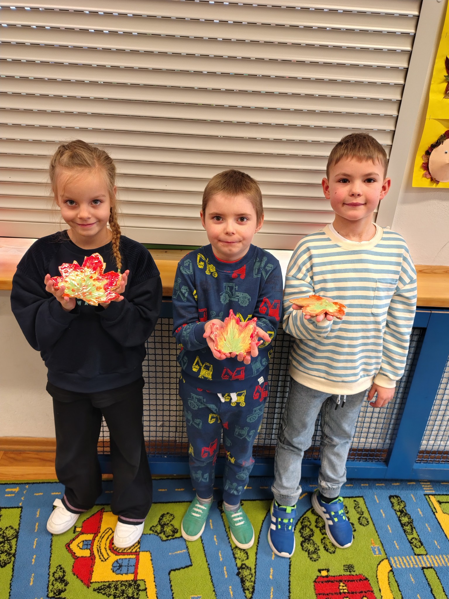 Chociaż jesień nadal panuje na kartkach kalendarza, to przyroda już dawno przygotowuje się do zimy. Opadły liści, które jeszcze nie tak dawno zachwycały swoimi barwami. Aby zatrzymać ten piękny czas, uczniowie klasy 1A wykonali piękne liście, które pozostaną z nimi na bardzo długo. Dzięki pomocy Pani Małgorzaty Kozik pierwszoklasiści wykonali piękne liście z ceramiki. Podczas serii lekcji rozwijających zdolności uczestniczyli w zajęciach z ceramiki i wykonały piękne prace. Dzięki temu liście znalezione podczas jesiennych spacerów użyczyły swoich kształtów i barw pięknym liściom ceramicznym. Dzieci natomiast miały okazję poznać kolejne etapy tworzenia ozdób z gliny.