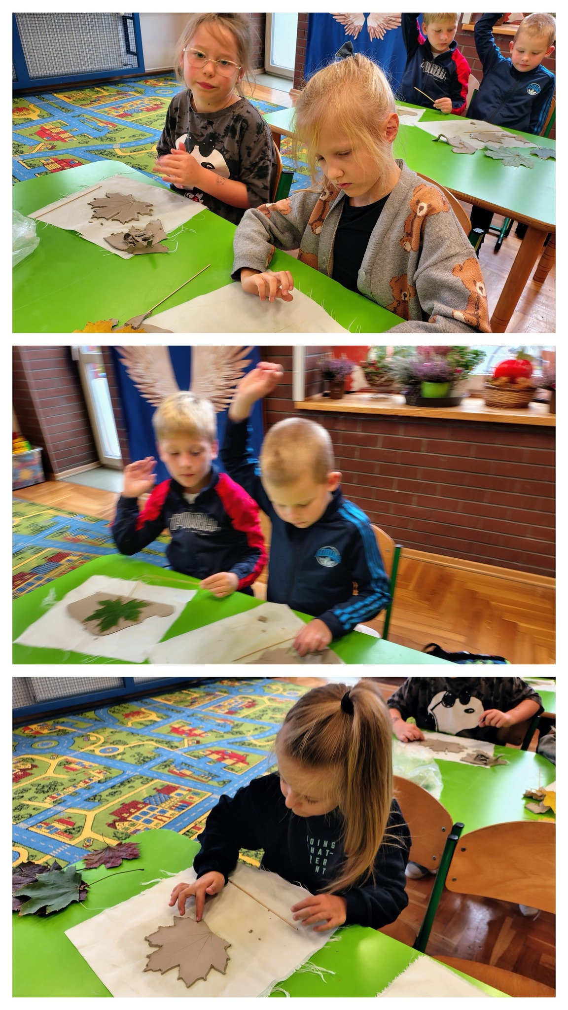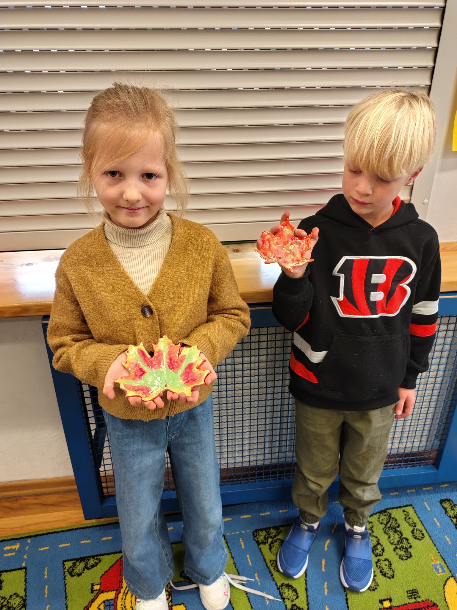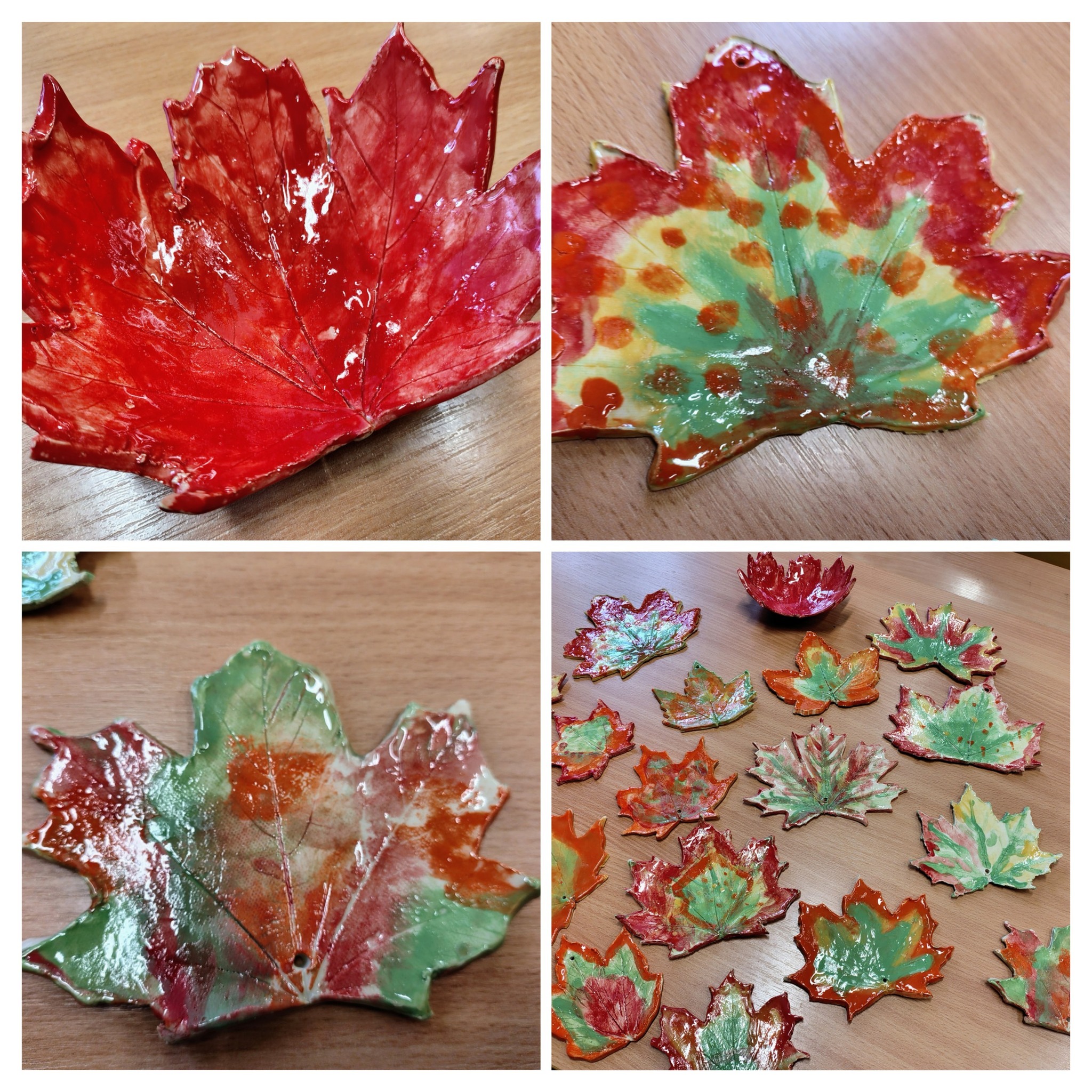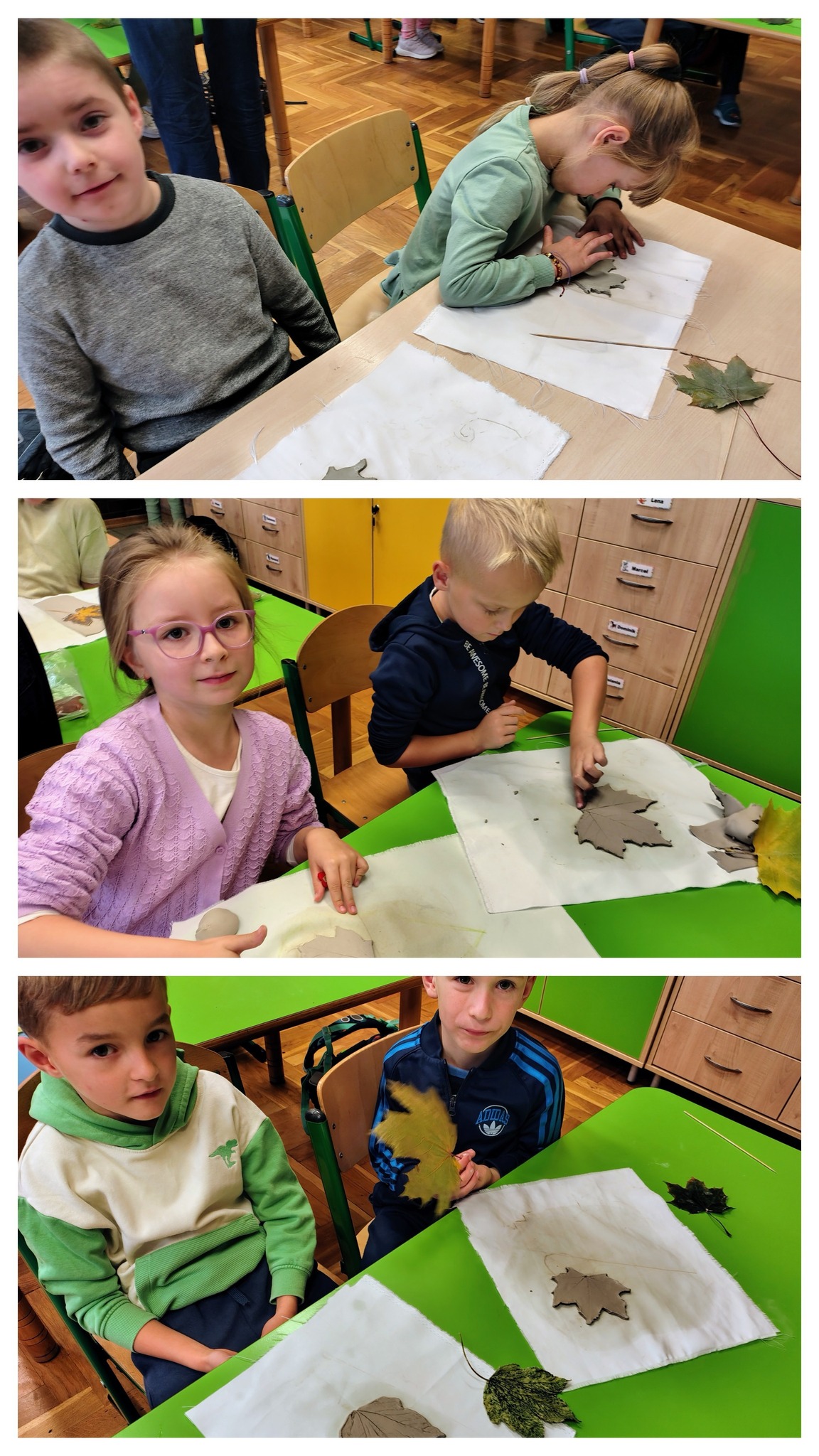 Chociaż jesień nadal panuje na kartkach kalendarza, to przyroda już dawno przygotowuje się do zimy. Opadły liści, które jeszcze nie tak dawno zachwycały swoimi barwami. Aby zatrzymać ten piękny czas, uczniowie klasy 1A wykonali piękne liście, które pozostaną z nimi na bardzo długo. Dzięki pomocy Pani Małgorzaty Kozik pierwszoklasiści wykonali piękne liście z ceramiki. Podczas serii lekcji rozwijających zdolności uczestniczyli w zajęciach z ceramiki i wykonały piękne prace. Dzięki temu liście znalezione podczas jesiennych spacerów użyczyły swoich kształtów i barw pięknym liściom ceramicznym. Dzieci natomiast miały okazję poznać kolejne etapy tworzenia ozdób z gliny.