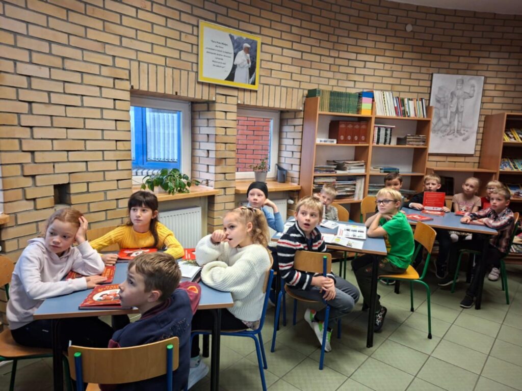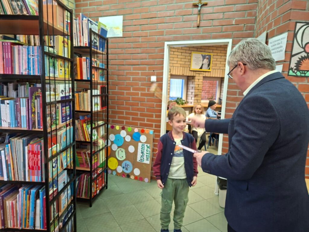Uroczystość tym razem odbyła się w siedzibie biblioteki szkolnej. Na pamiątkę tego wydarzenia uczniowie klas II otrzymali Wyprawki Czytelnicze przekazane szkole w ramach kampanii Instytutu Książki „Mała książka – wielki człowiek” sfinansowanej ze środków Ministerstwa Kultury, Dziedzictwa Narodowego i Sportu. Poniżej galeria zdjęć z tej uroczystości.