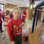 Zmęczony długą, pieszą podróżą z powodu braku śniegu, nie zapomniał o naszych grzecznych dzieciach i wszystkich obdarował prezentami.