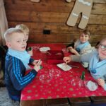 Kiedy Mikołaj obdarował już wszystkie grzeczne dzieci prezentami wrócił już do swojej chaty to niespodziewanie odwiedziły go nasi pierwszoklasiści. We wtorkowy poranek wszystkie klasy 1 wybrały się na spotkanie z Mikołajem w Krasiejowie. Nie było to proste zadanie i zanim Mikołaj ich przyjął, to musiały wykonać własne bombki, oraz pokonać liczne zadania przygotowane przez Elfy. Co prawda nie udało się poszaleć na śnieżnej górce z powodu deszczu, ale zamiast tego mogły obejrzeć świąteczne bajki. Na zakończenie dotarły do chaty Mikołaja, który obdarował wszystkich prezentami. To była wspaniała wycieczka, pełna atrakcji i zabawy. Pozostanie na długo w pamięci pierwszaków.