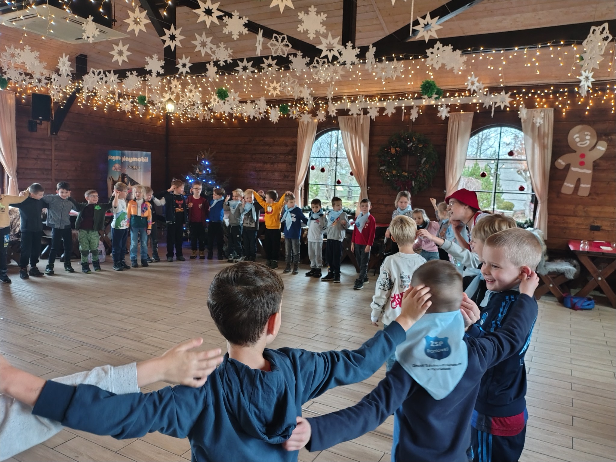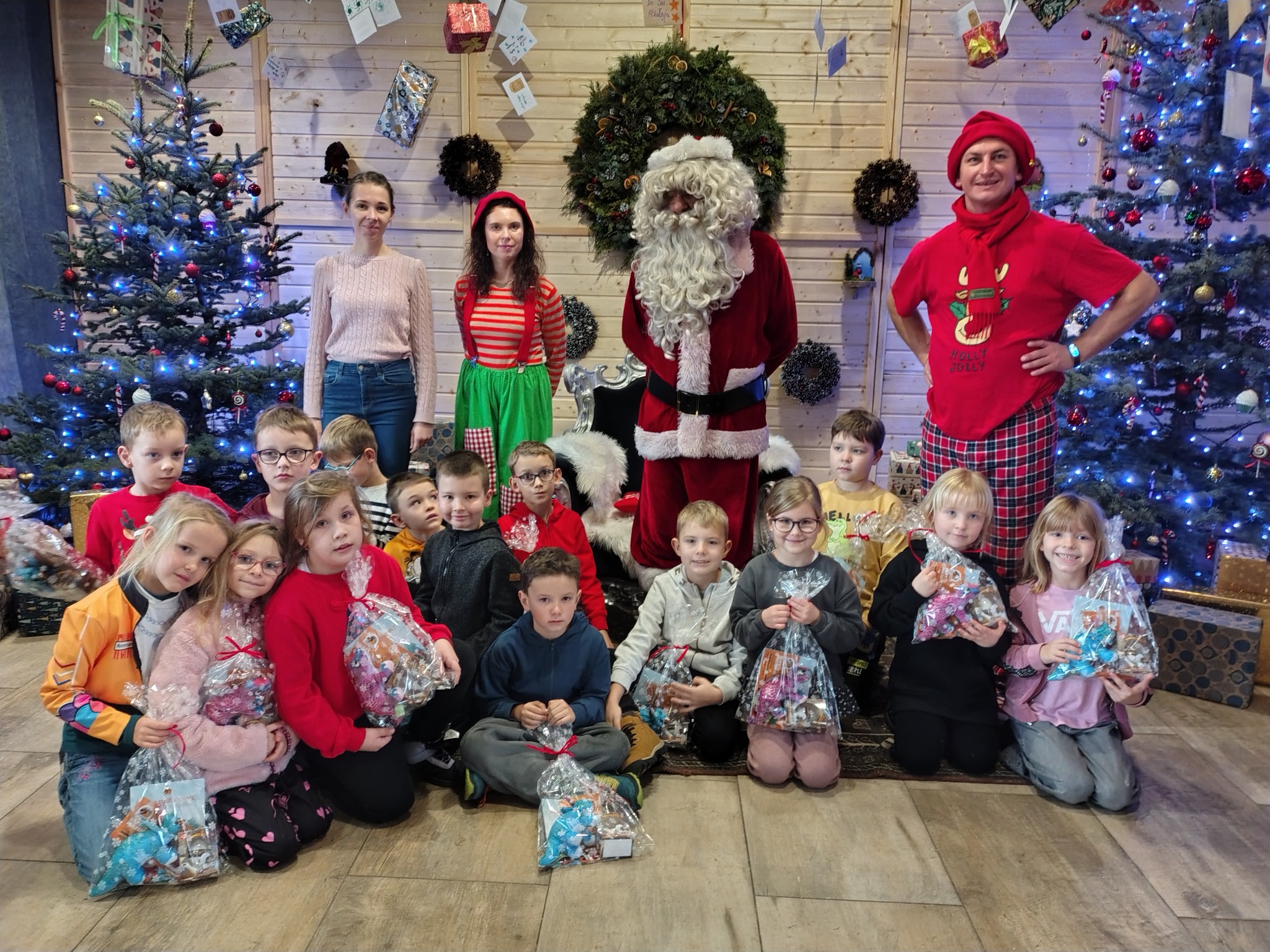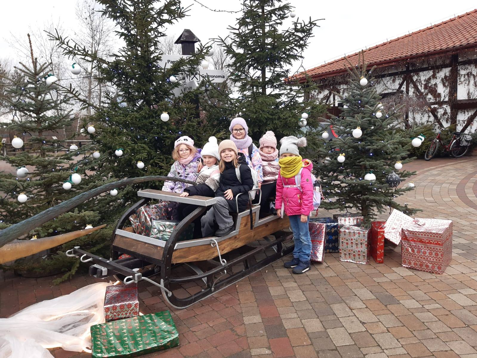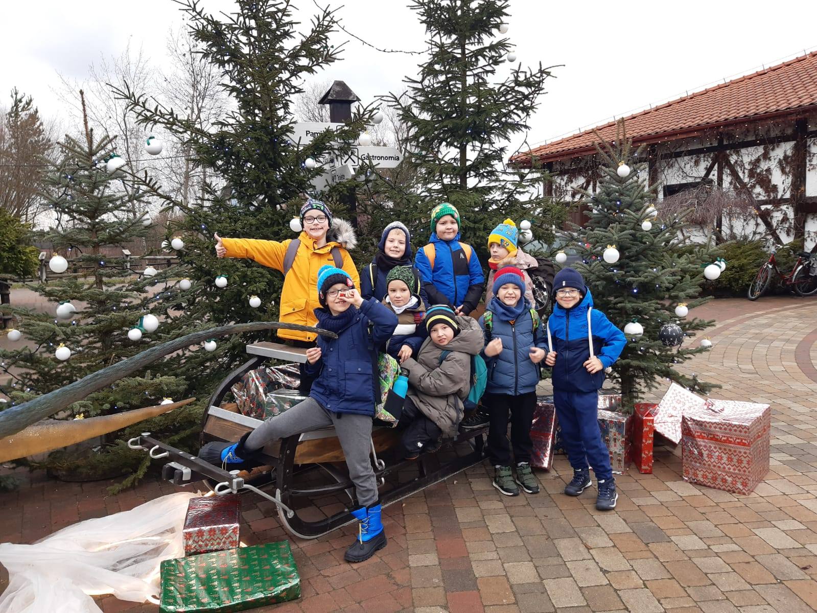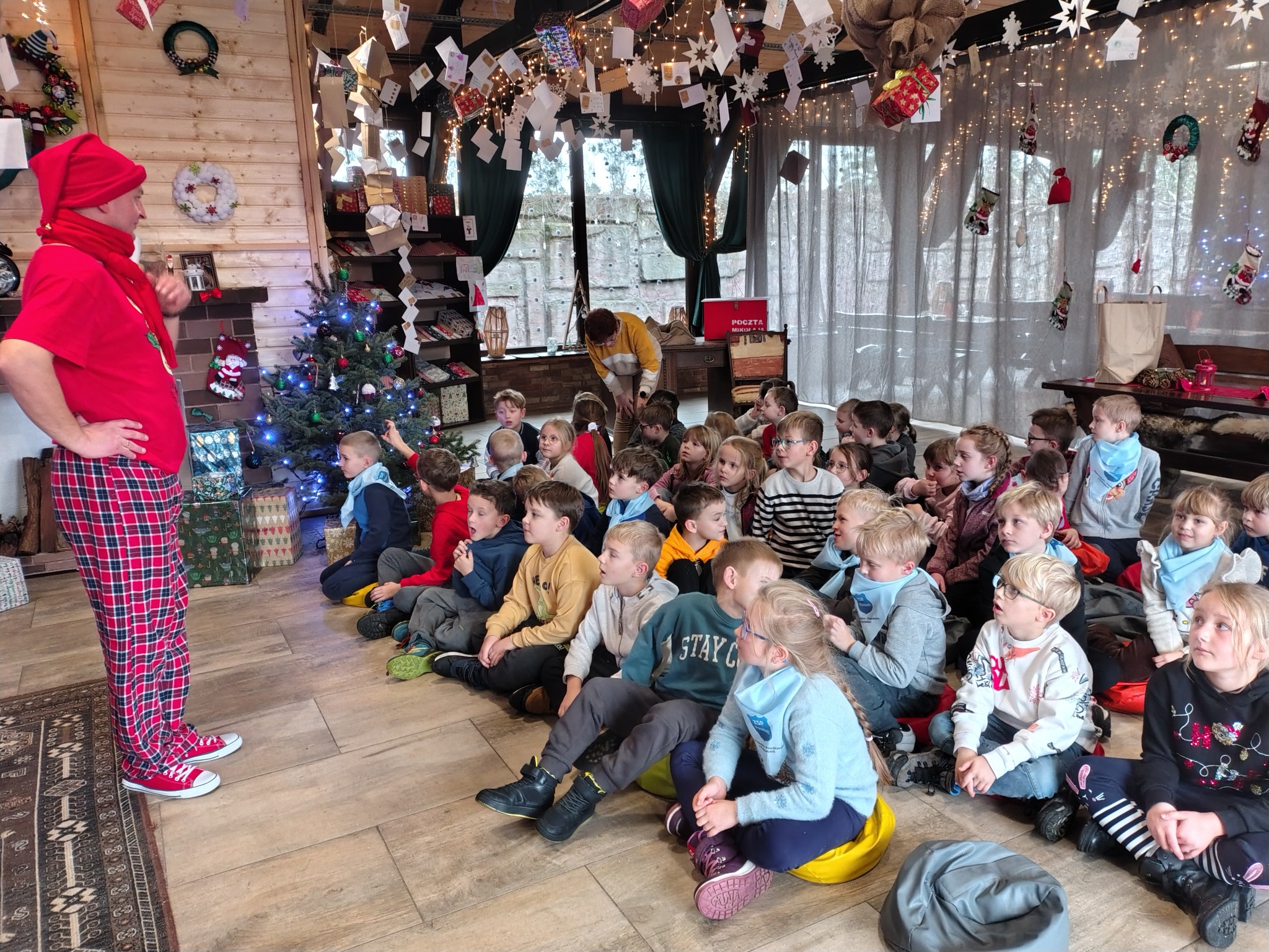 Kiedy Mikołaj obdarował już wszystkie grzeczne dzieci prezentami wrócił już do swojej chaty to niespodziewanie odwiedziły go nasi pierwszoklasiści. We wtorkowy poranek wszystkie klasy 1 wybrały się na spotkanie z Mikołajem w Krasiejowie. Nie było to proste zadanie i zanim Mikołaj ich przyjął, to musiały wykonać własne bombki, oraz pokonać liczne zadania przygotowane przez Elfy. Co prawda nie udało się poszaleć na śnieżnej górce z powodu deszczu, ale zamiast tego mogły obejrzeć świąteczne bajki. Na zakończenie dotarły do chaty Mikołaja, który obdarował wszystkich prezentami. To była wspaniała wycieczka, pełna atrakcji i zabawy. Pozostanie na długo w pamięci pierwszaków.