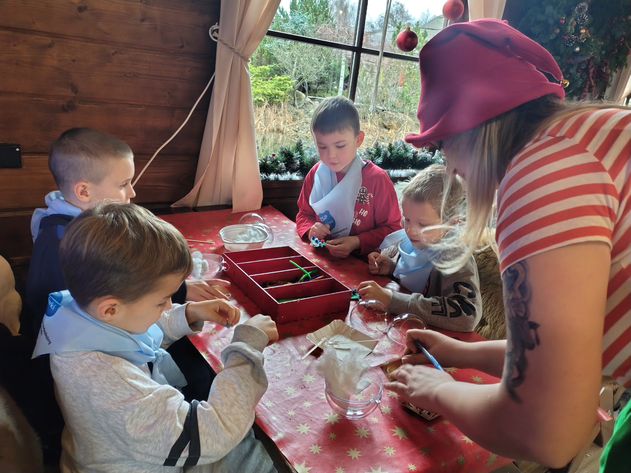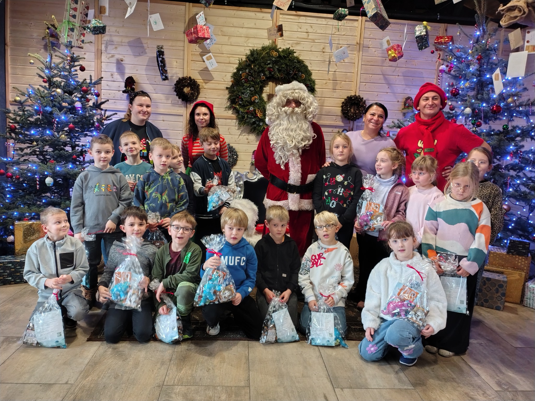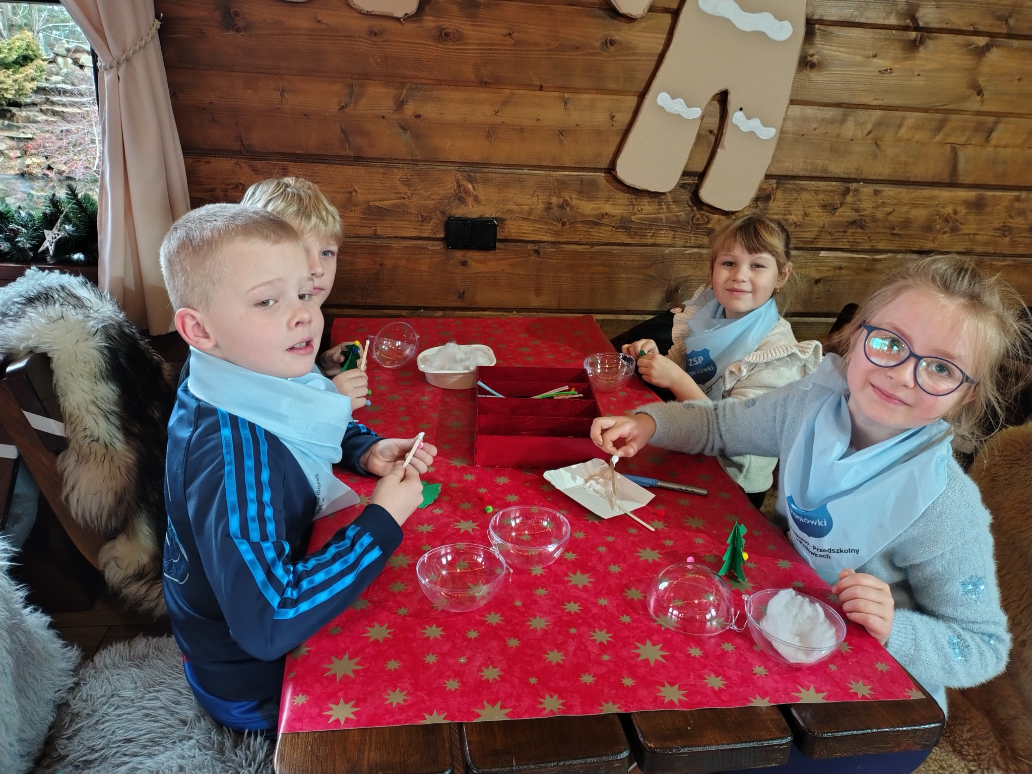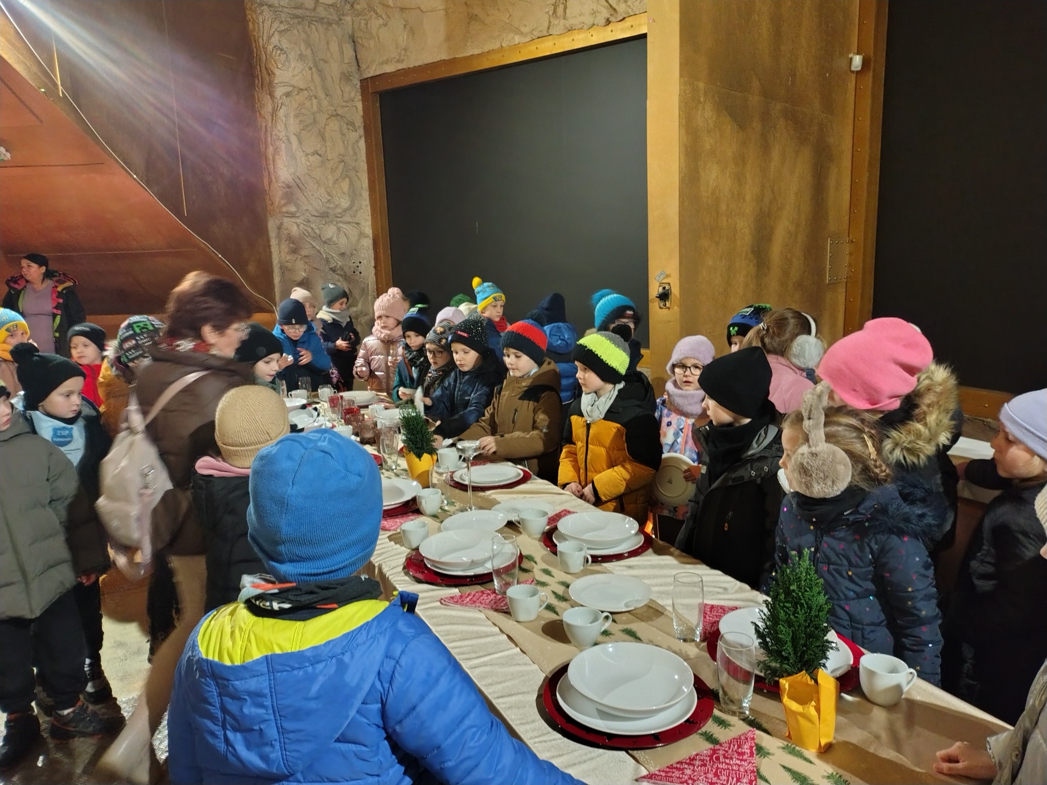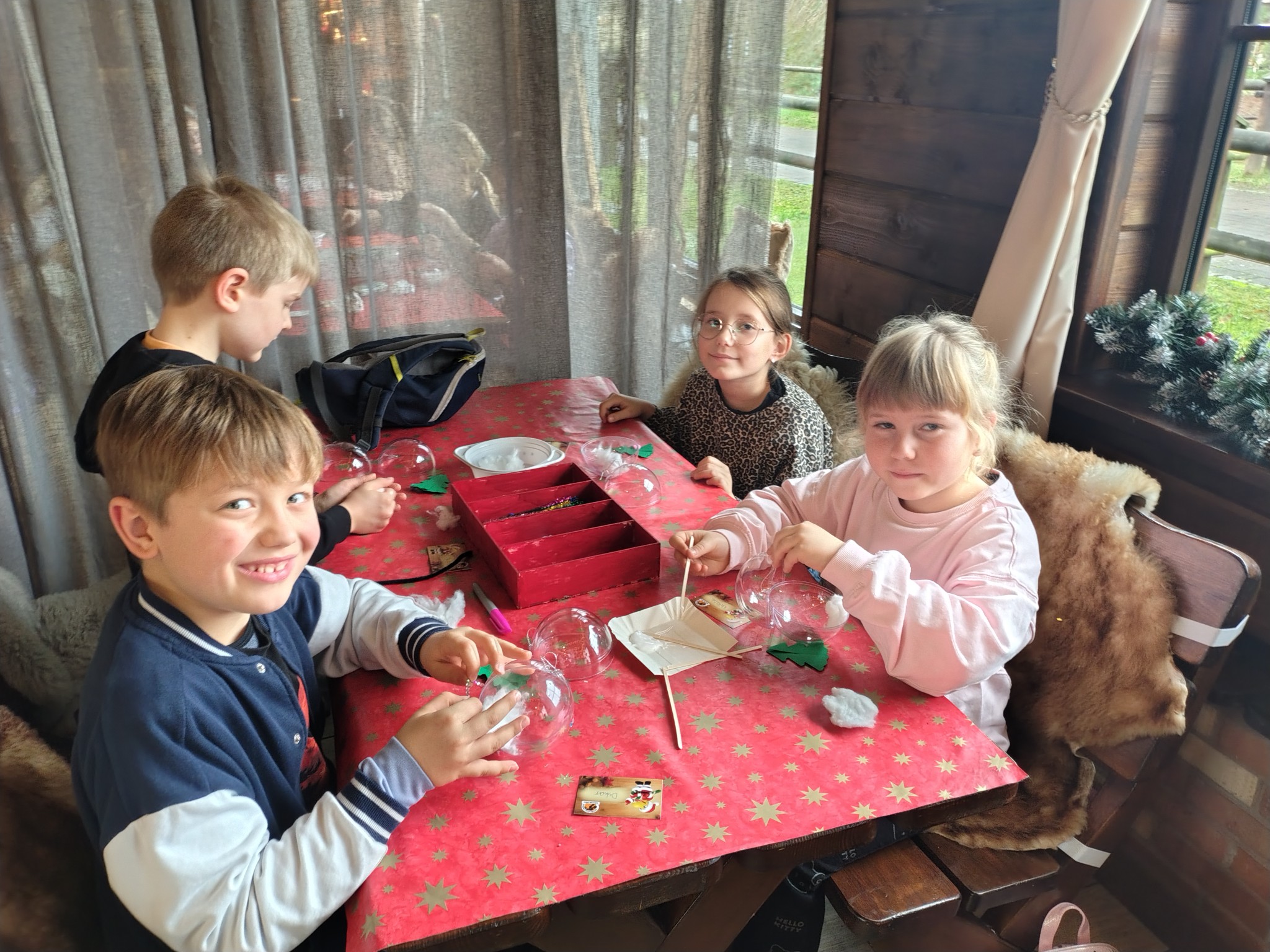 Kiedy Mikołaj obdarował już wszystkie grzeczne dzieci prezentami wrócił już do swojej chaty to niespodziewanie odwiedziły go nasi pierwszoklasiści. We wtorkowy poranek wszystkie klasy 1 wybrały się na spotkanie z Mikołajem w Krasiejowie. Nie było to proste zadanie i zanim Mikołaj ich przyjął, to musiały wykonać własne bombki, oraz pokonać liczne zadania przygotowane przez Elfy. Co prawda nie udało się poszaleć na śnieżnej górce z powodu deszczu, ale zamiast tego mogły obejrzeć świąteczne bajki. Na zakończenie dotarły do chaty Mikołaja, który obdarował wszystkich prezentami. To była wspaniała wycieczka, pełna atrakcji i zabawy. Pozostanie na długo w pamięci pierwszaków.