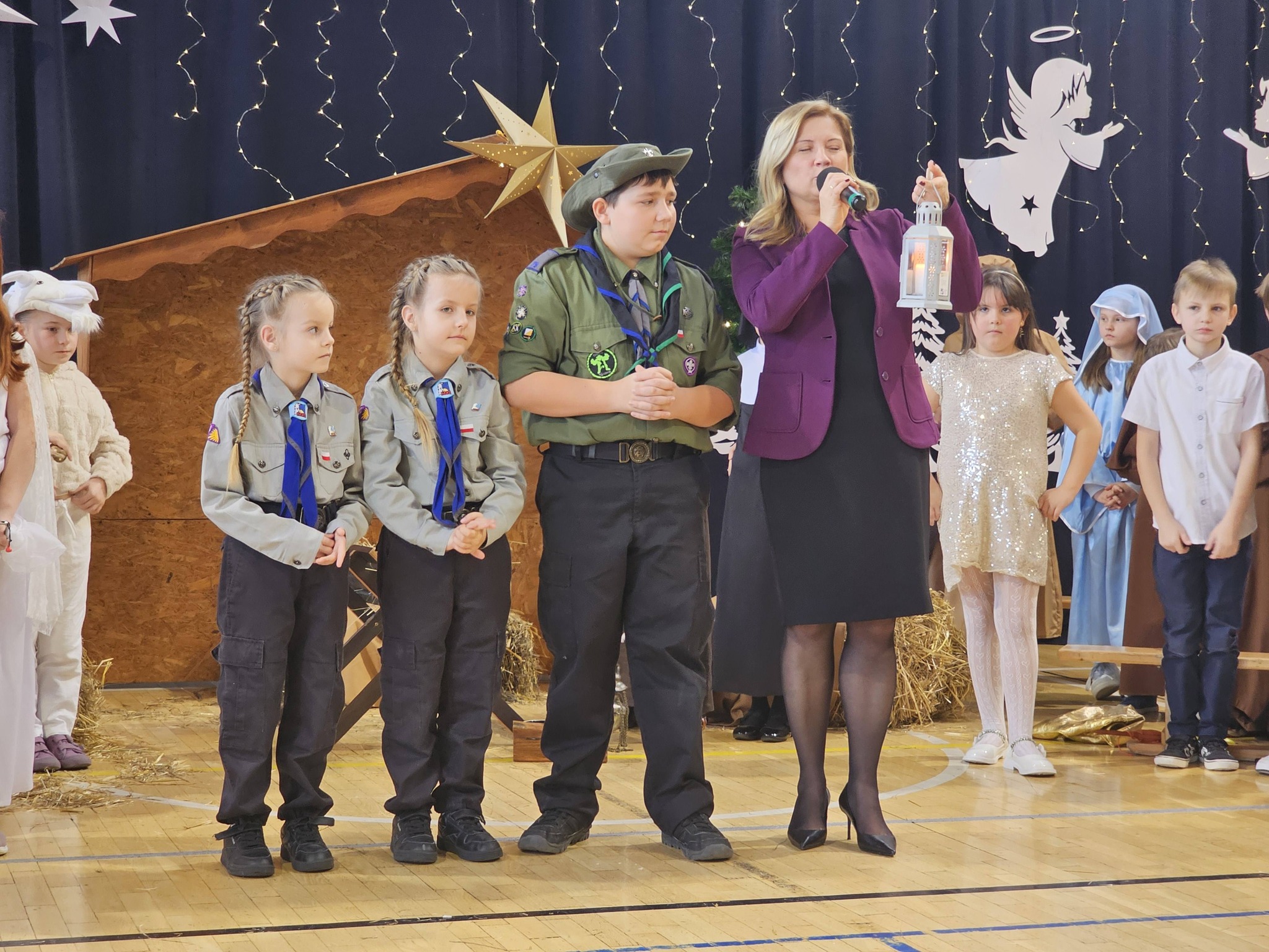 Na zakończenie pojawili się harcerze, którzy wnieśli Światełko Betlejemskie. Tegoroczne hasło „Pielęgnuj dobro w sobie” pokazuje, że nawet mały płomień może rozświetlić wiele serc 💛