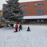 Korzystając z pięknej aury i świeżego białego puchu wybrali się na szkolny dziedziniec, aby w pełni poczuć magię zimy.