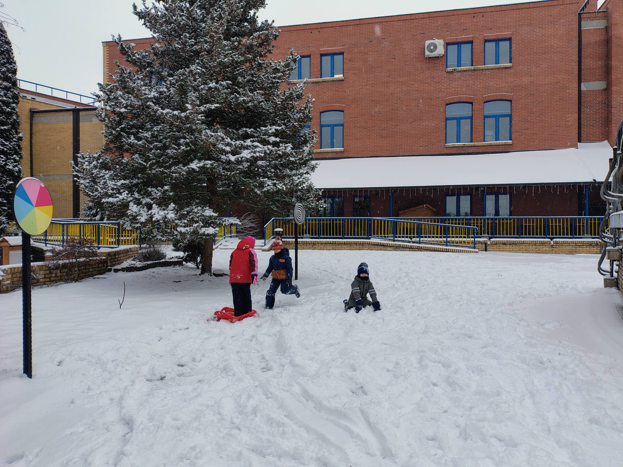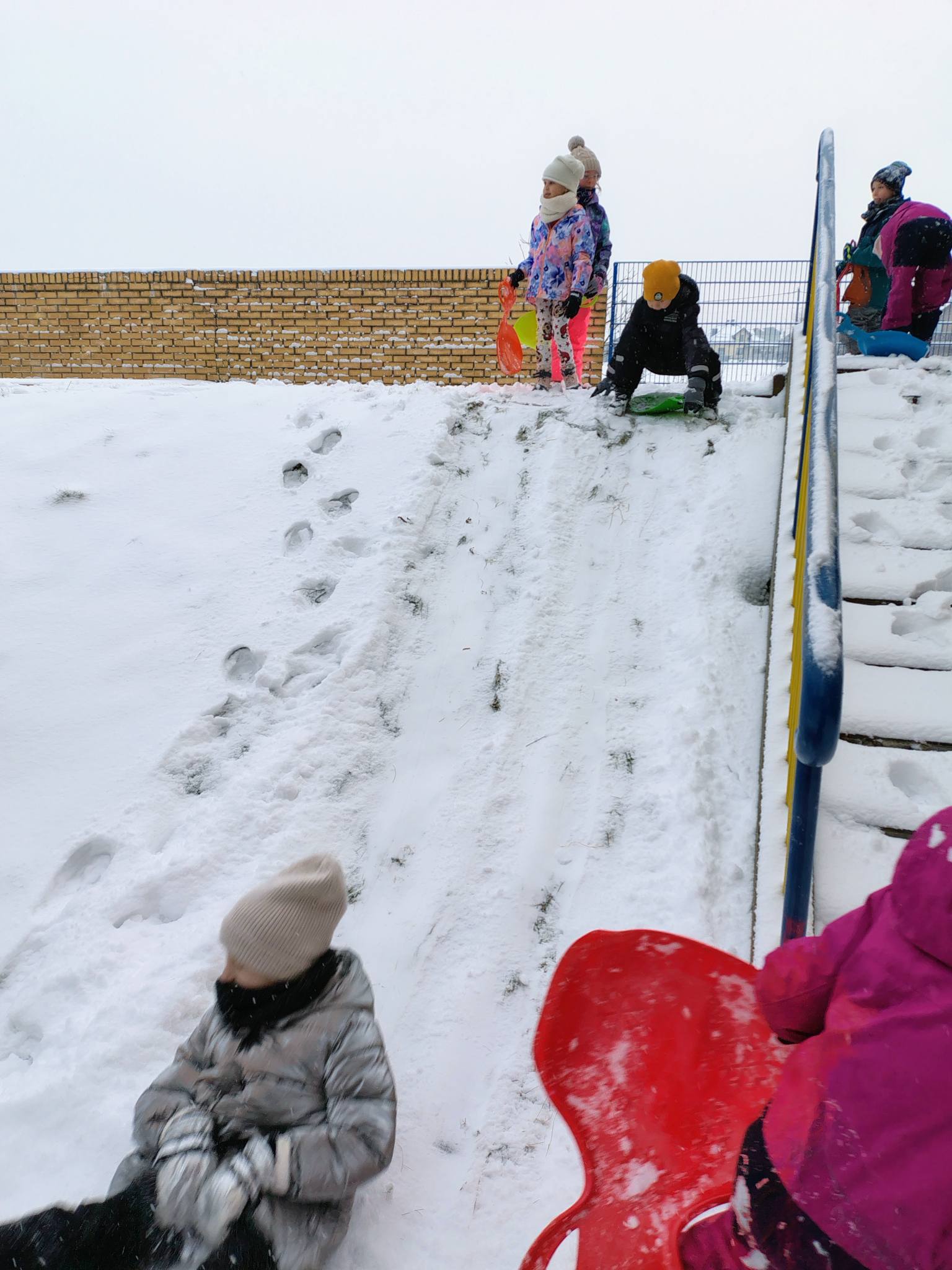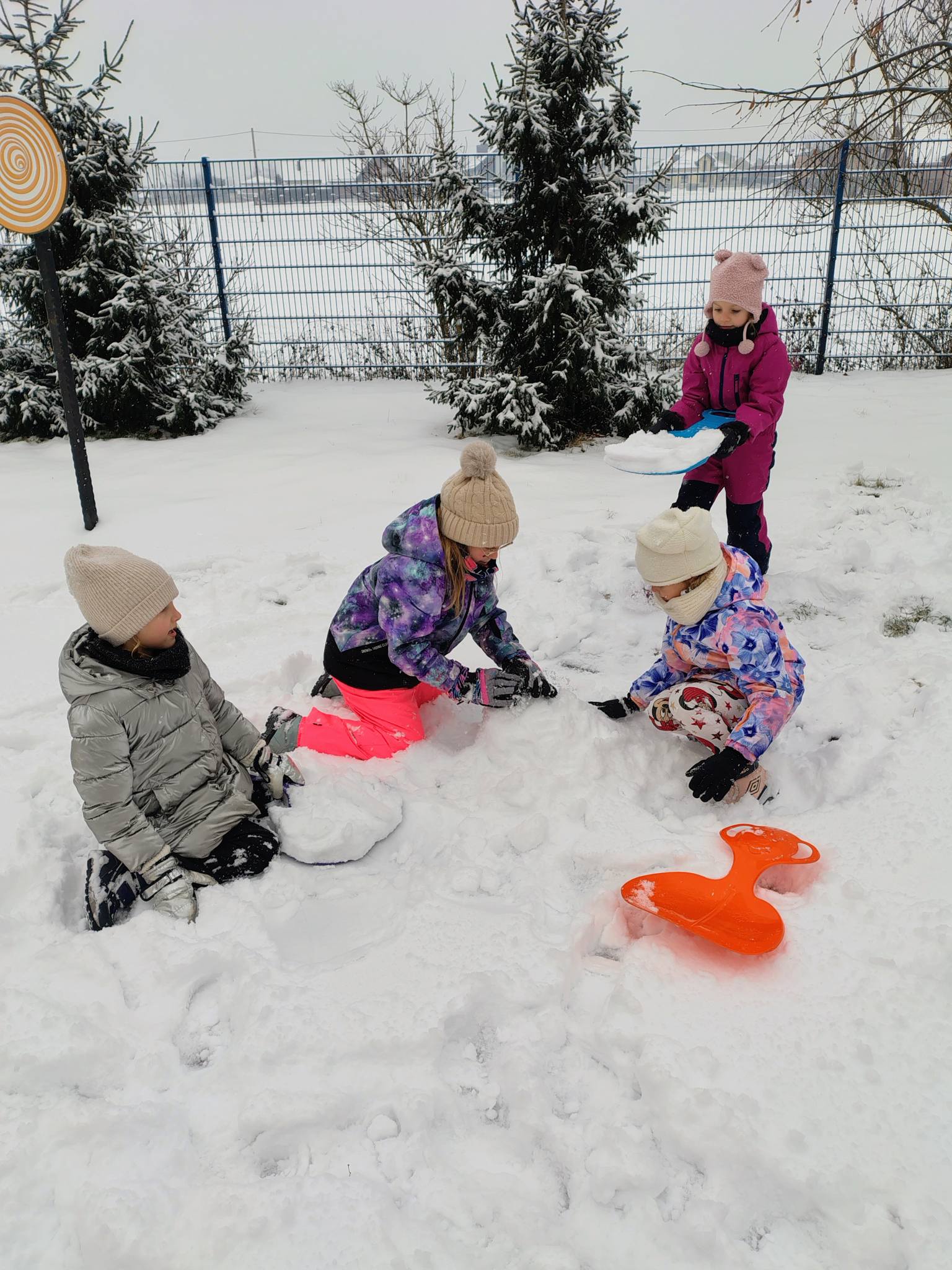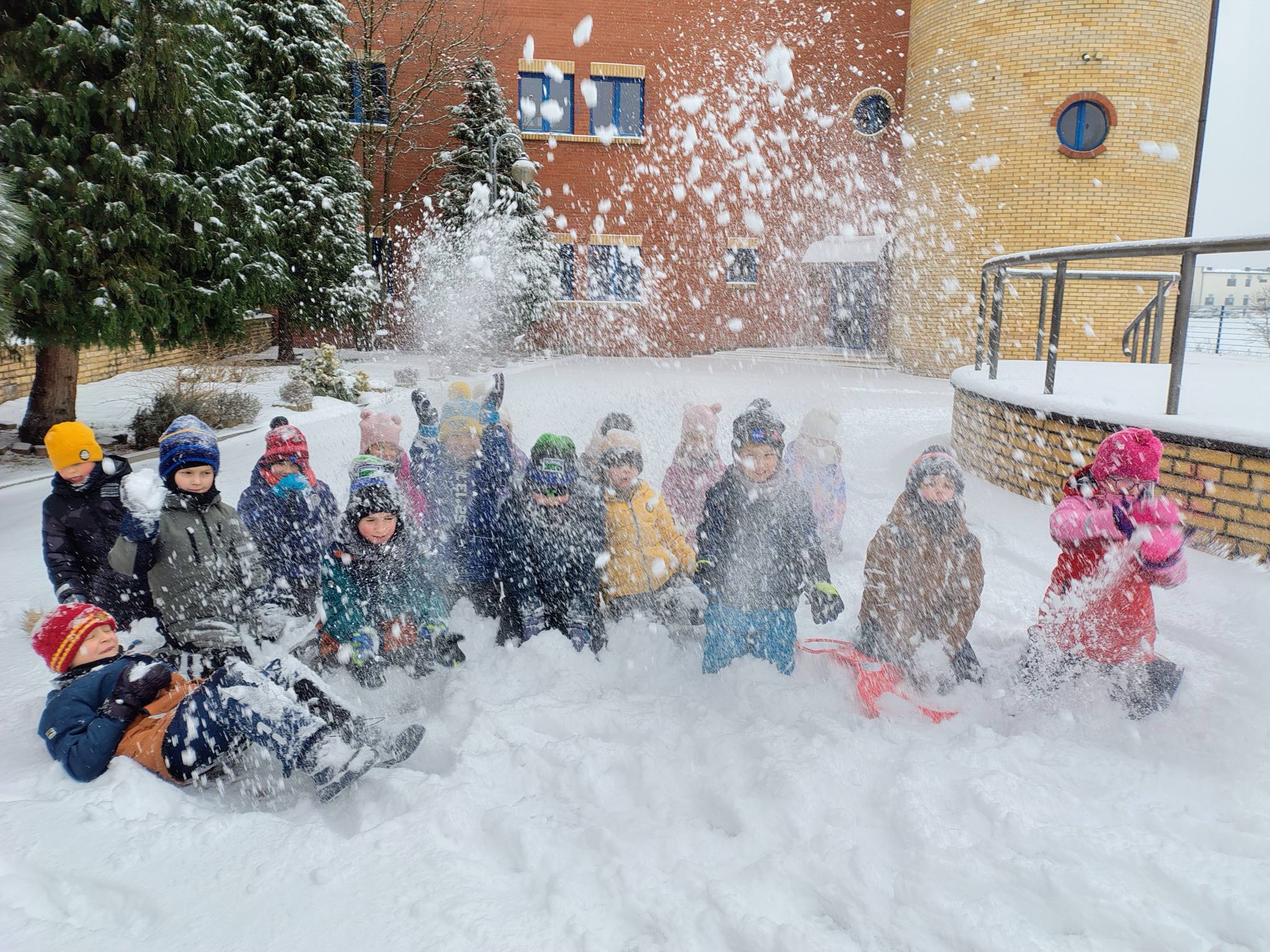 Korzystając z pięknej aury i świeżego białego puchu wybrali się na szkolny dziedziniec, aby w pełni poczuć magię zimy.