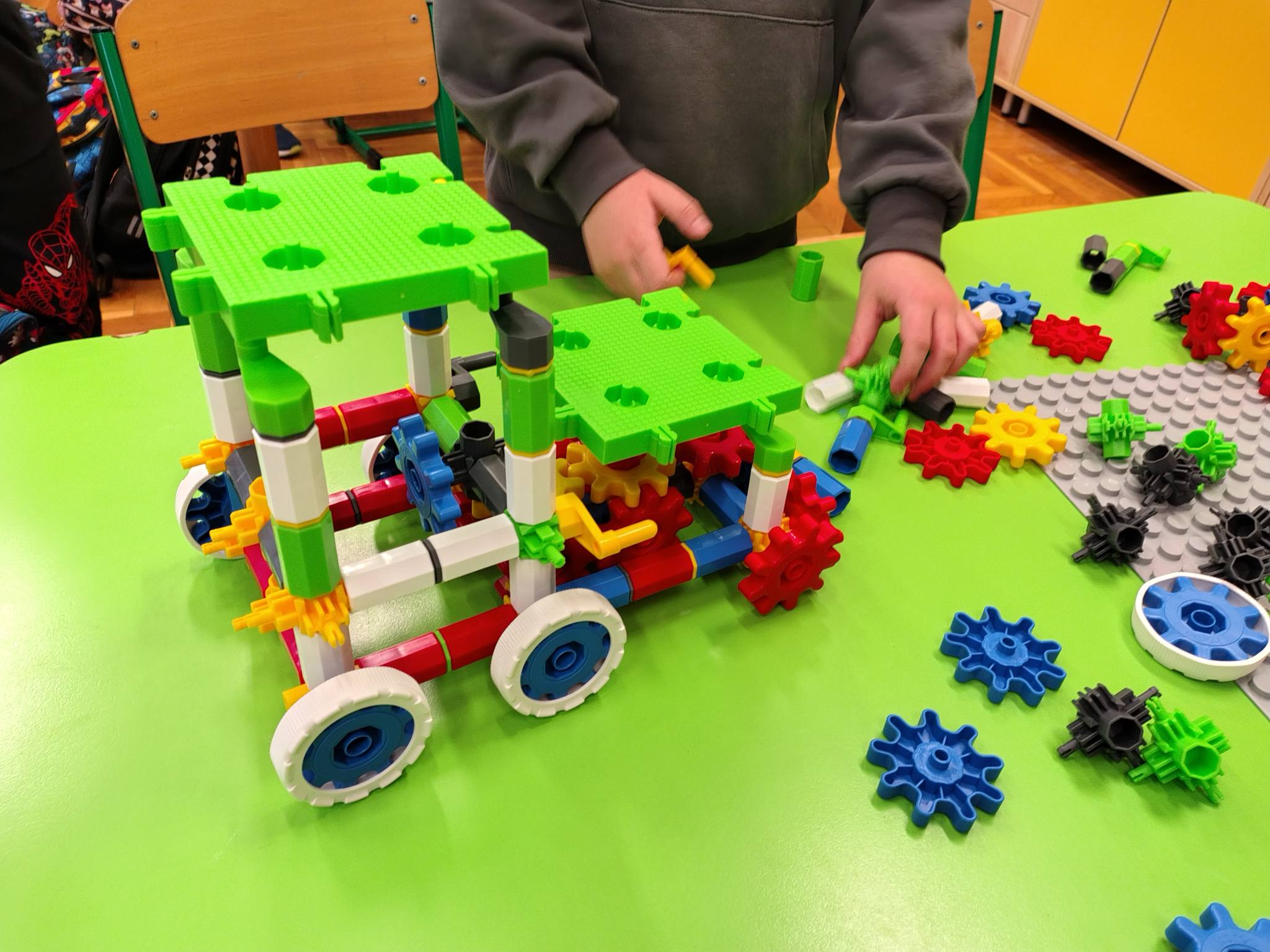 Wykorzystując klocki Korbo, dzieci tworzyły niesamowite, ruchome konstrukcje.