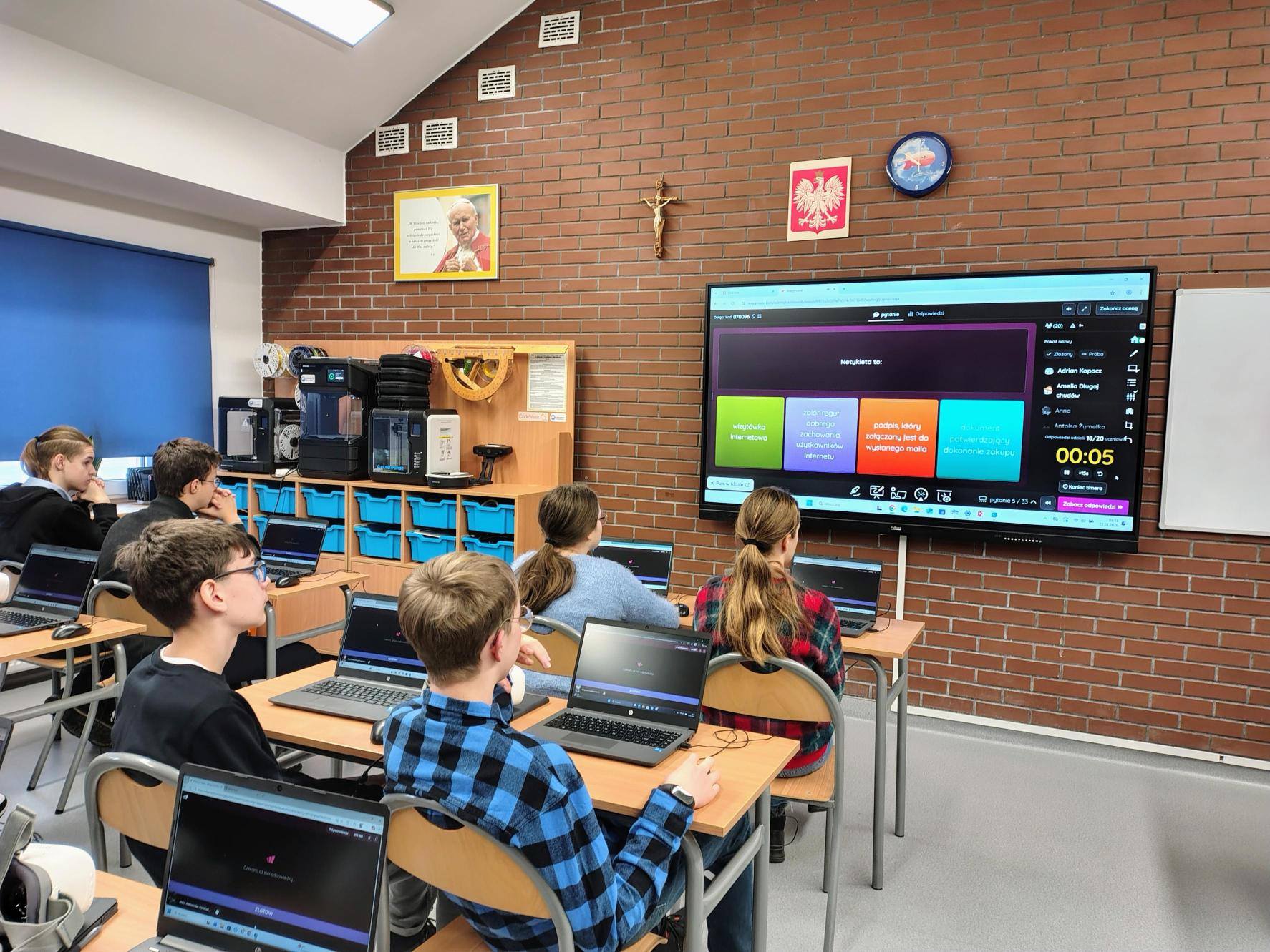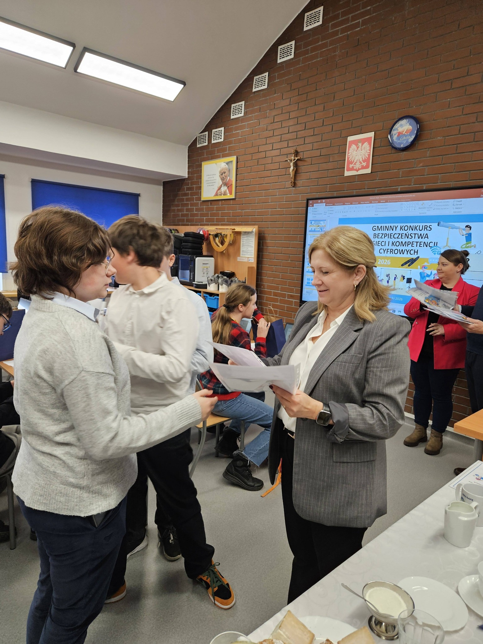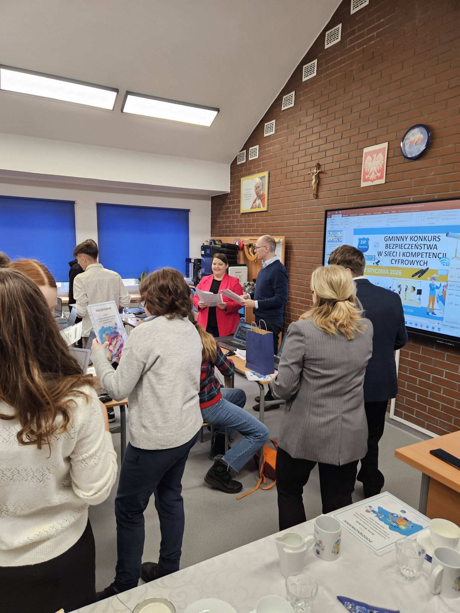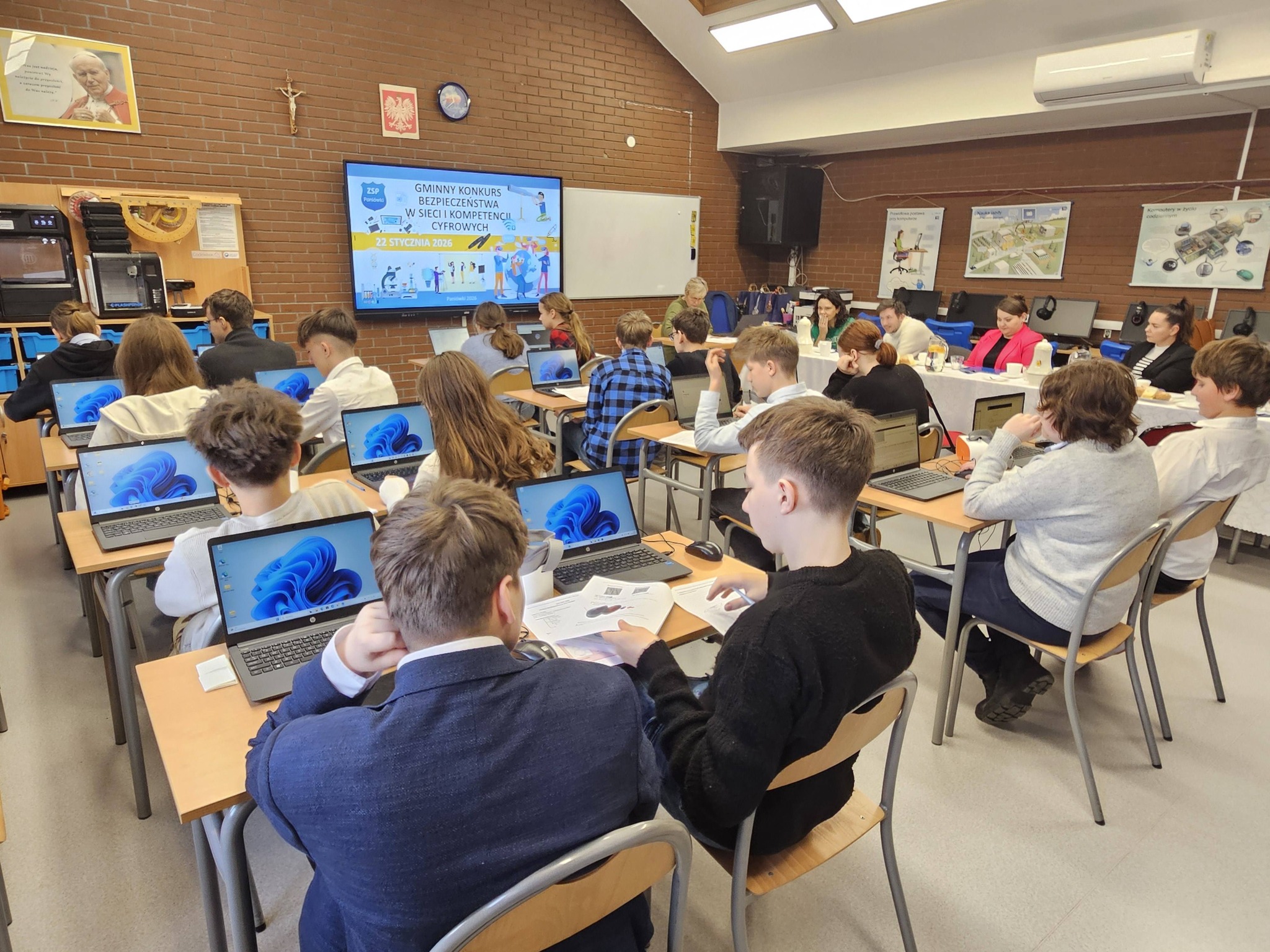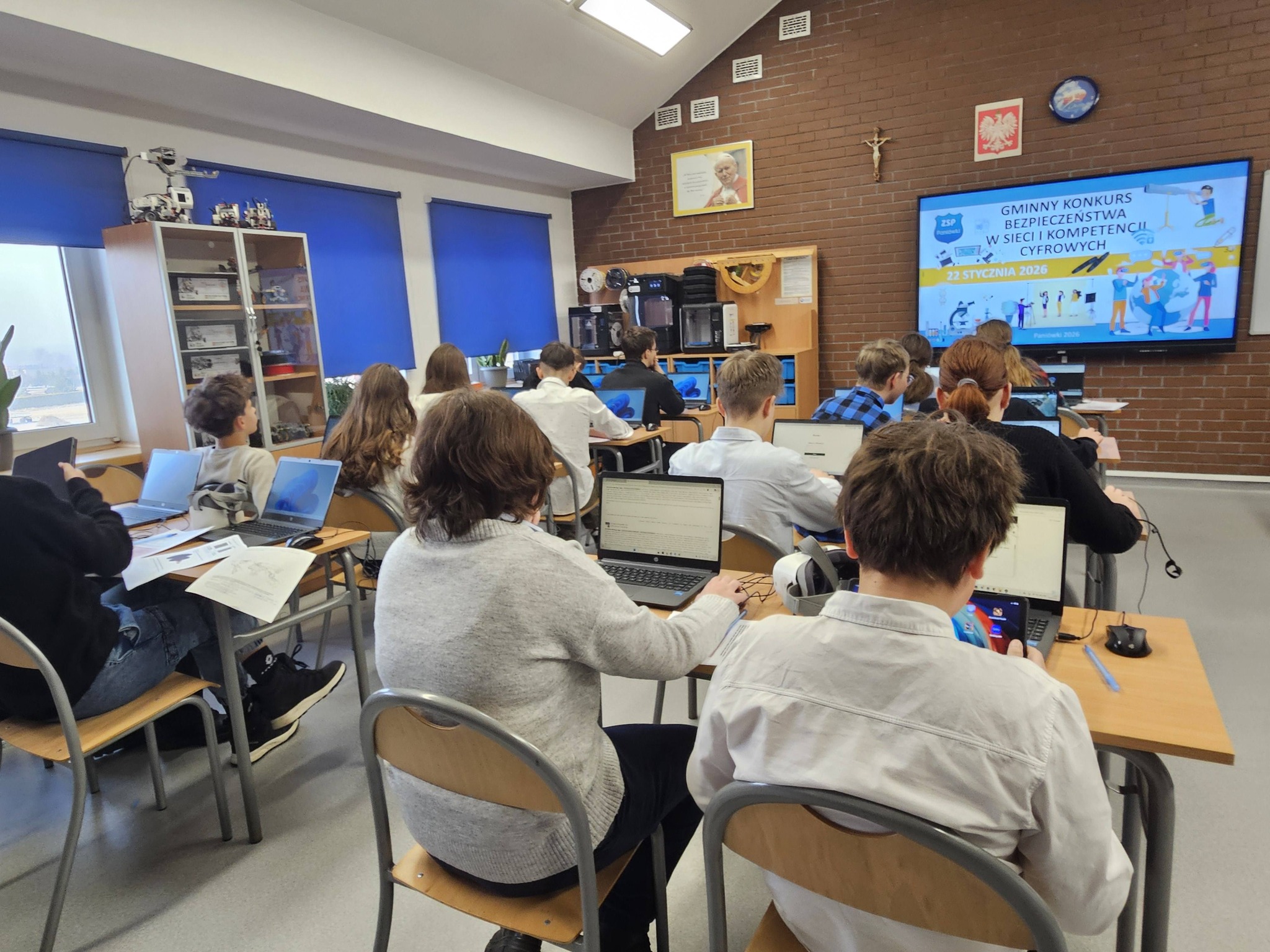 22 stycznia w naszej szkole odbył się Gminny Konkurs Bezpieczeństwa w Sieci i Kompetencji Cyfrowych EDU-SAFE 2026. Uczniowie czterech szkół Gminy rywalizowali w dwuosobowych zespołach – w teście wiedzy oraz zadaniach praktycznych z zakresu cyberbezpieczeństwa i kompetencji cyfrowych. Łącznie wystartowało 8 drużyn.