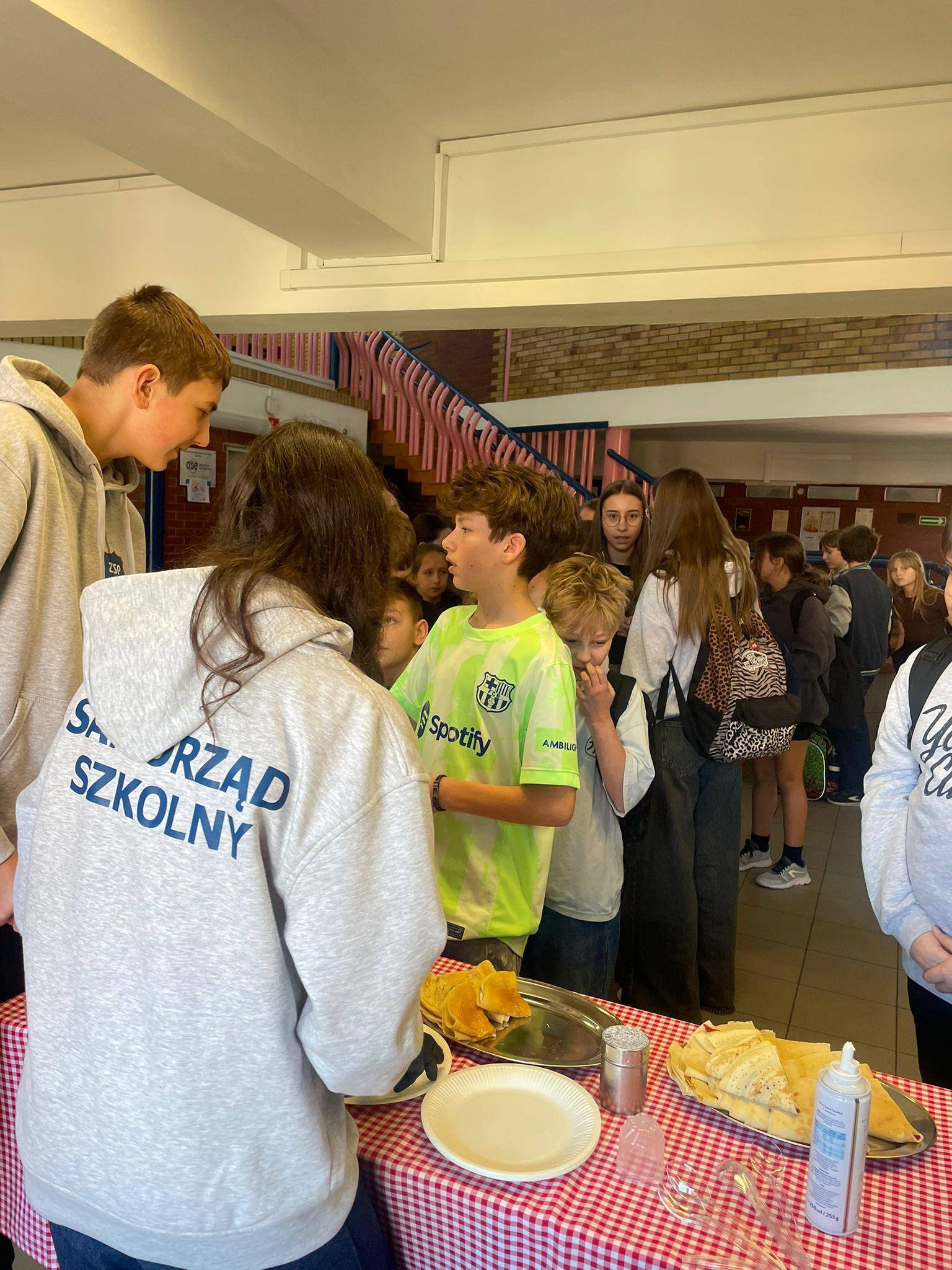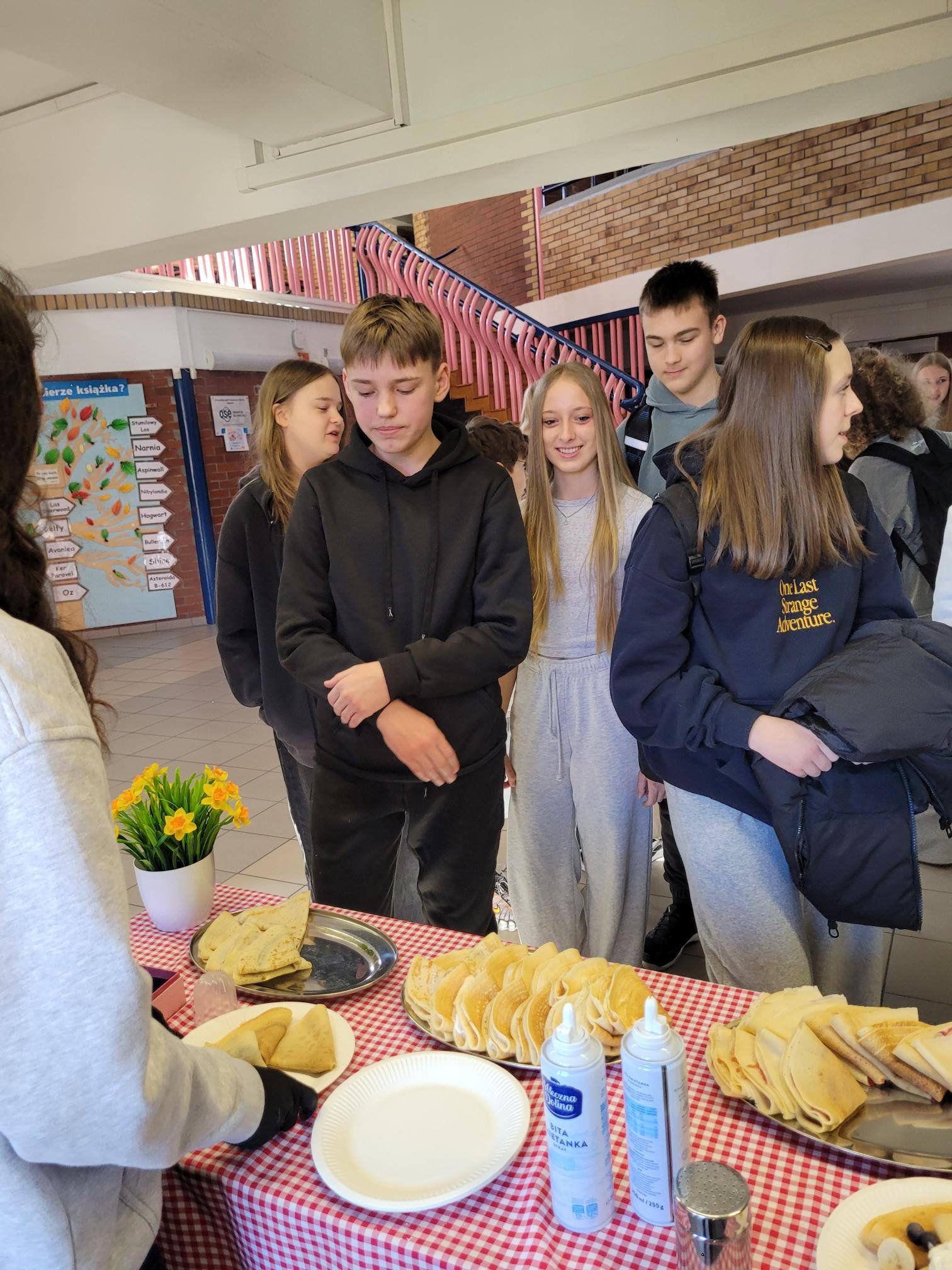 Pancake Day (inaczej Shrove Tuesday) to brytyjski odpowiednik tłustego czwartku. W tym roku obchodzony był 17go lutego, ale ze względu na czas ferii, do naszej szkoły zawitał dopiero dziś. Dzień naleśnika to kulinarna tradycja, która ma swoje korzenie w średniowieczu, a przeniesiona na nasz grunt szkolny jest świetną okazją do poznawania kultury krajów anglojęzycznych. Chyba śmiało można powiedzieć, że za naleśnikami przepadamy nie mniej niż Brytyjczycy, bo zjedliśmy ich dzisiaj prawie 400!!!