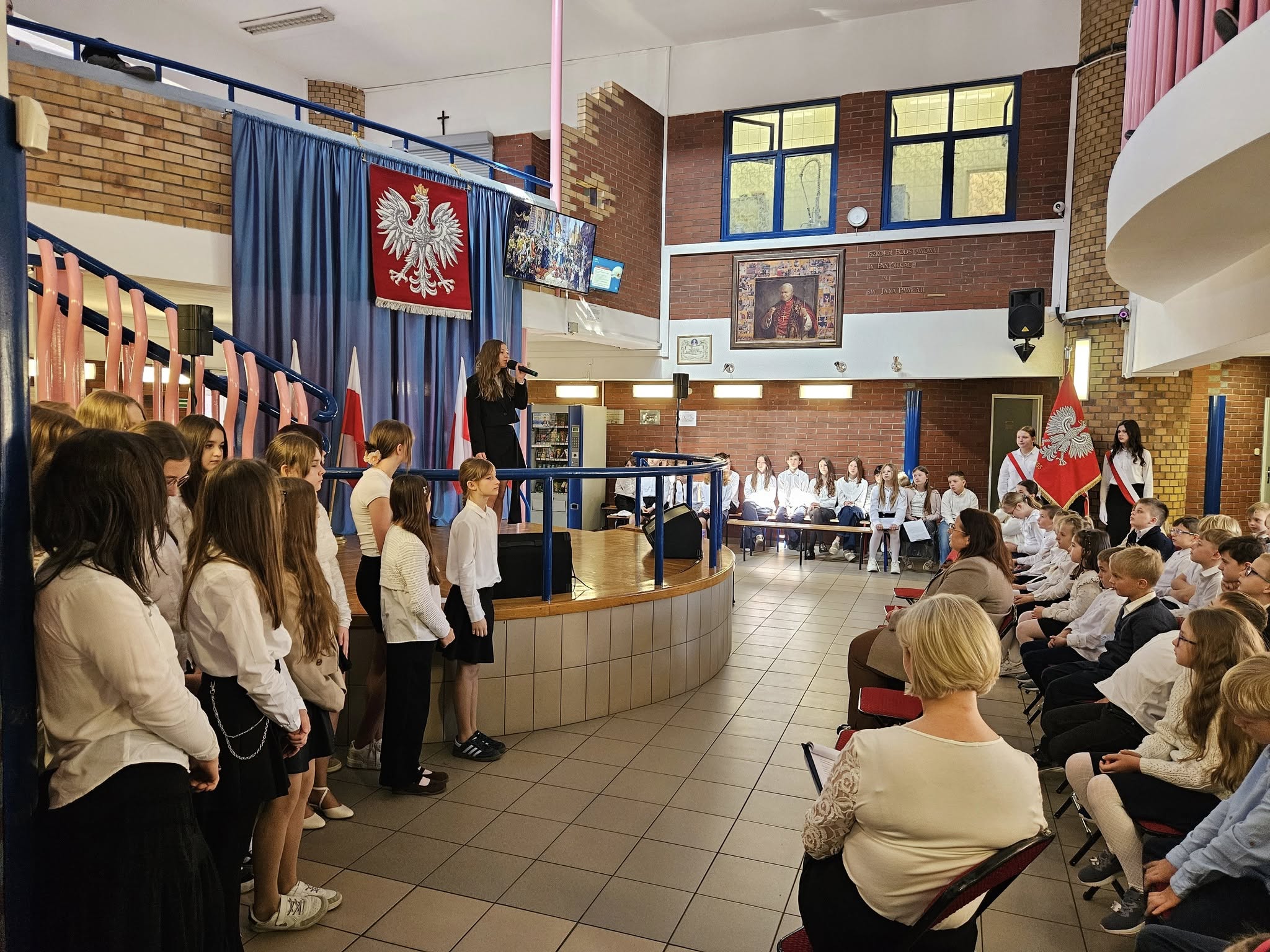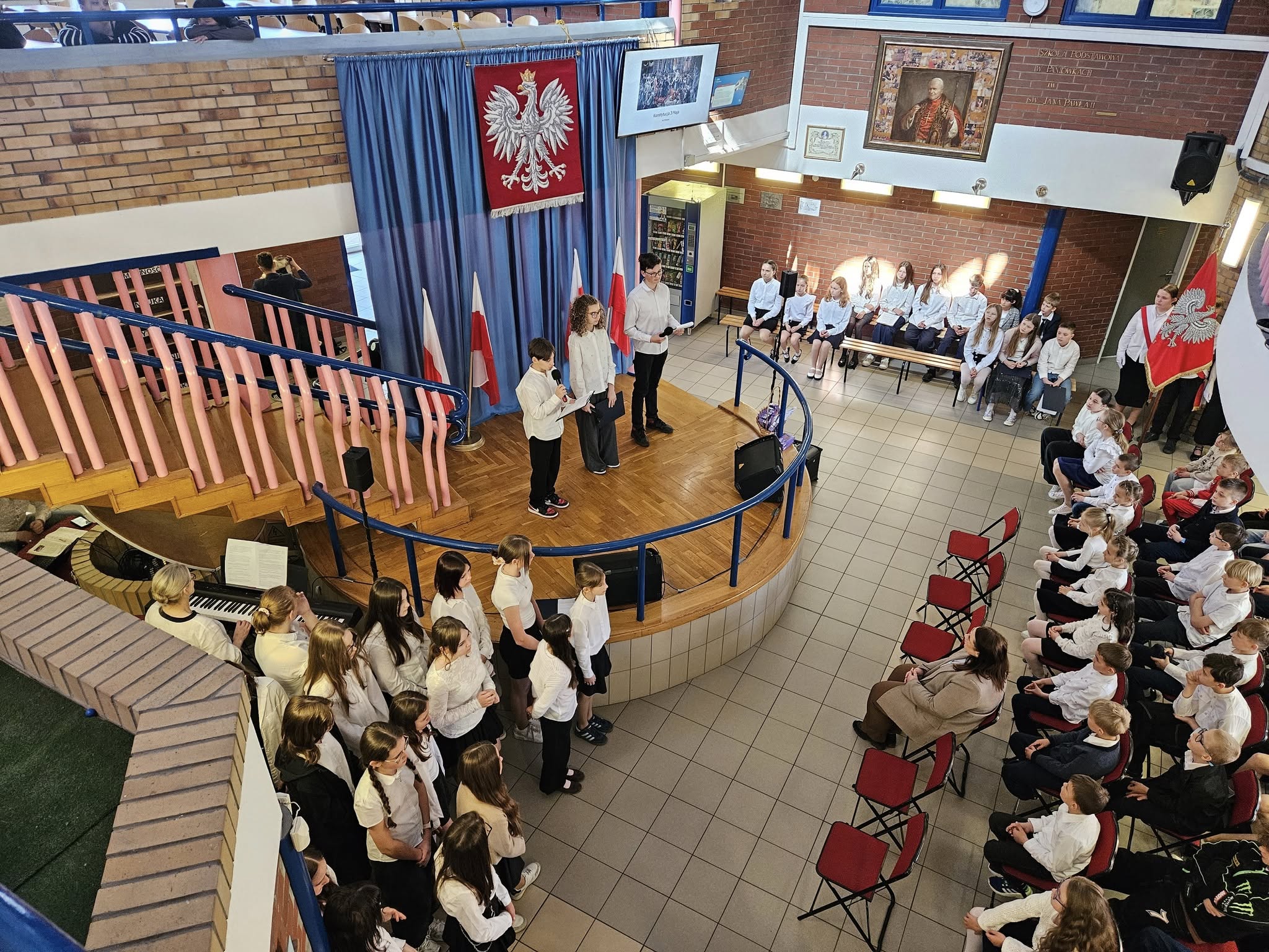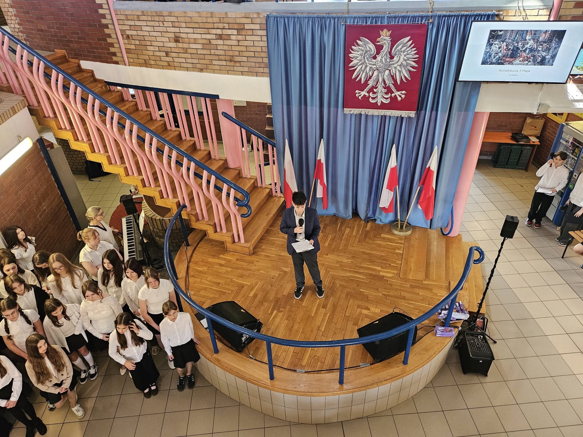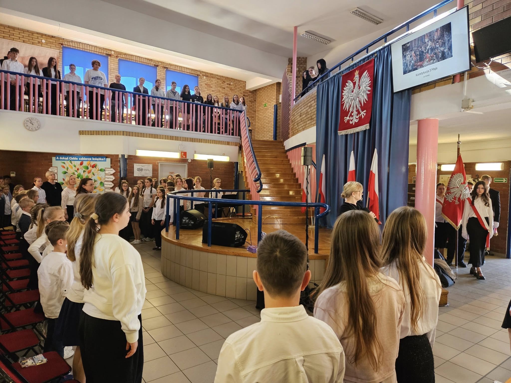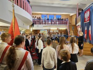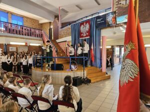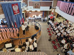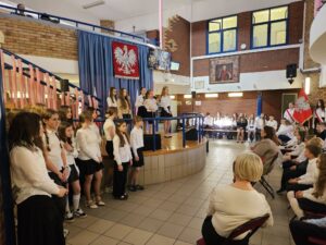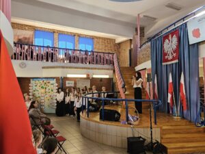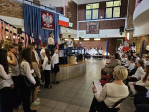 Dzisiaj w naszej szkole odbyły się dwie uroczyste akademie upamiętniające uchwalenie Konstytucji 3 maja — osobno dla uczniów klas młodszych oraz dla klas starszych. Uczniowie przypomnieli najważniejsze wydarzenia z 1791 roku oraz znaczenie pierwszej w Europie i drugiej na świecie nowoczesnej konstytucji. Podczas występów zaprezentowano wiersze, piosenki patriotyczne oraz krótkie inscenizacje historyczne. Program akademii przygotowała pani Celina Widuch, nauczyciel historii, oraz pani Beata Łakomska, nauczyciel muzyki. Społeczność szkolna godnie wyśpiewała Hymn Polski oraz Rotę, podkreślając uroczysty i patriotyczny charakter wydarzenia. Uroczystości były ważną lekcją historii i patriotyzmu dla całej szkoły.